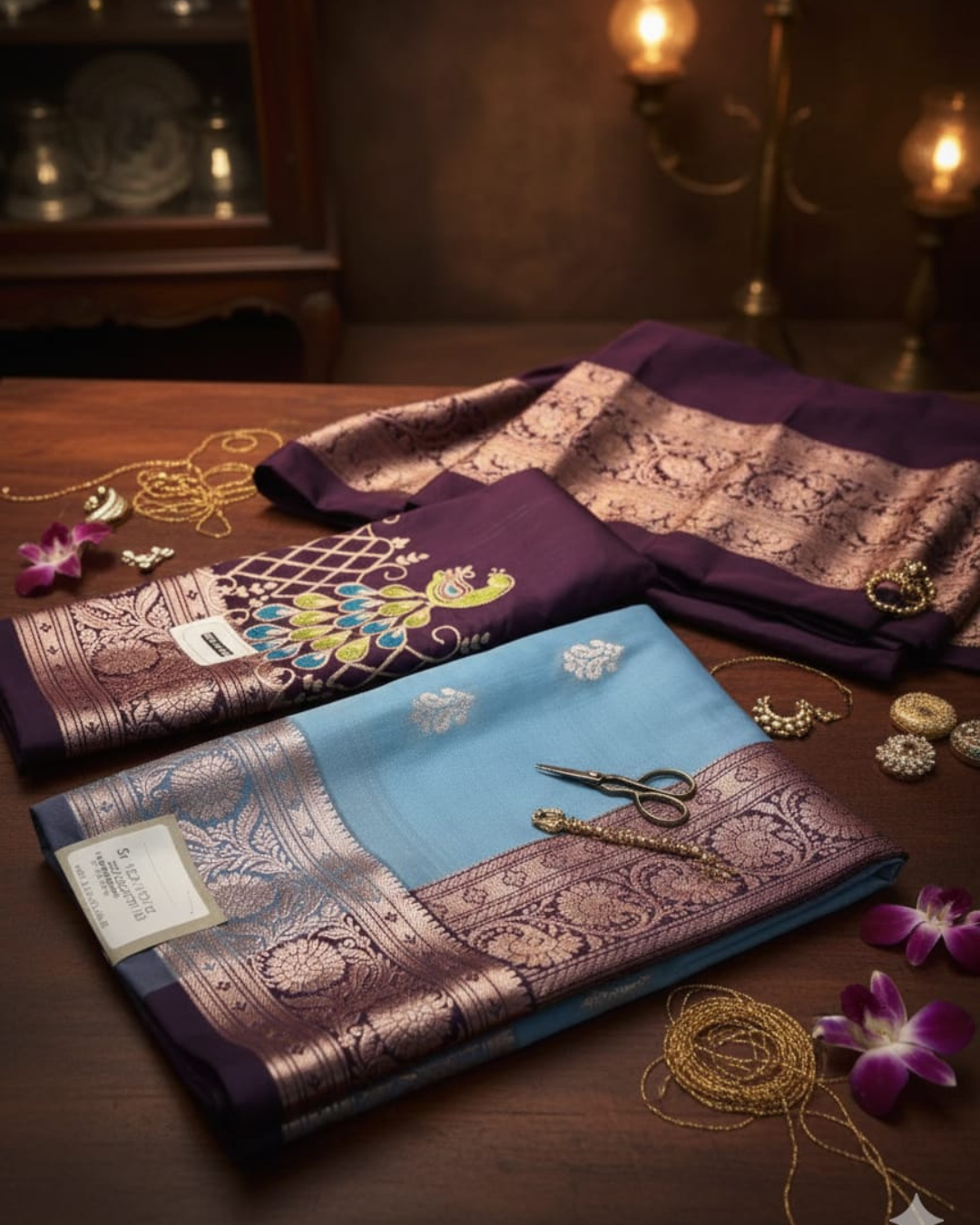 Silk Saree – D.No.21 | Peacock Embroidery Blouse