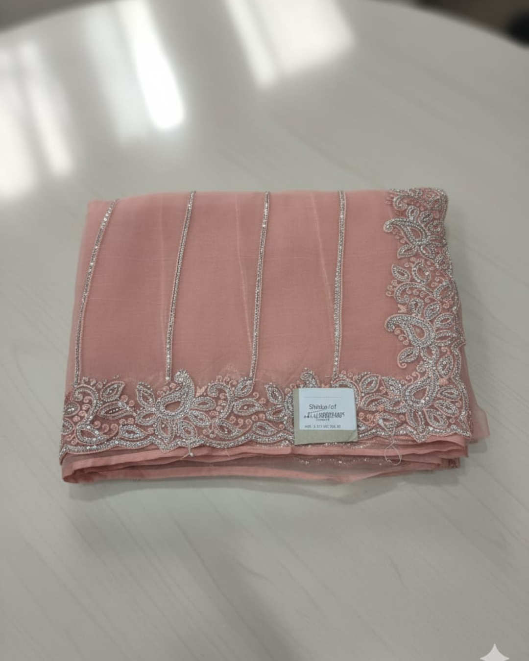 Introducing this luxurious Bridal Saree crafted from rich Viscose Georgette, featuring exquisite CM Zari and Zarkan work that adds a royal bridal glow. Designed in a soft and elegant peach color, this saree is perfect for weddings, receptions, and grand celebrations.