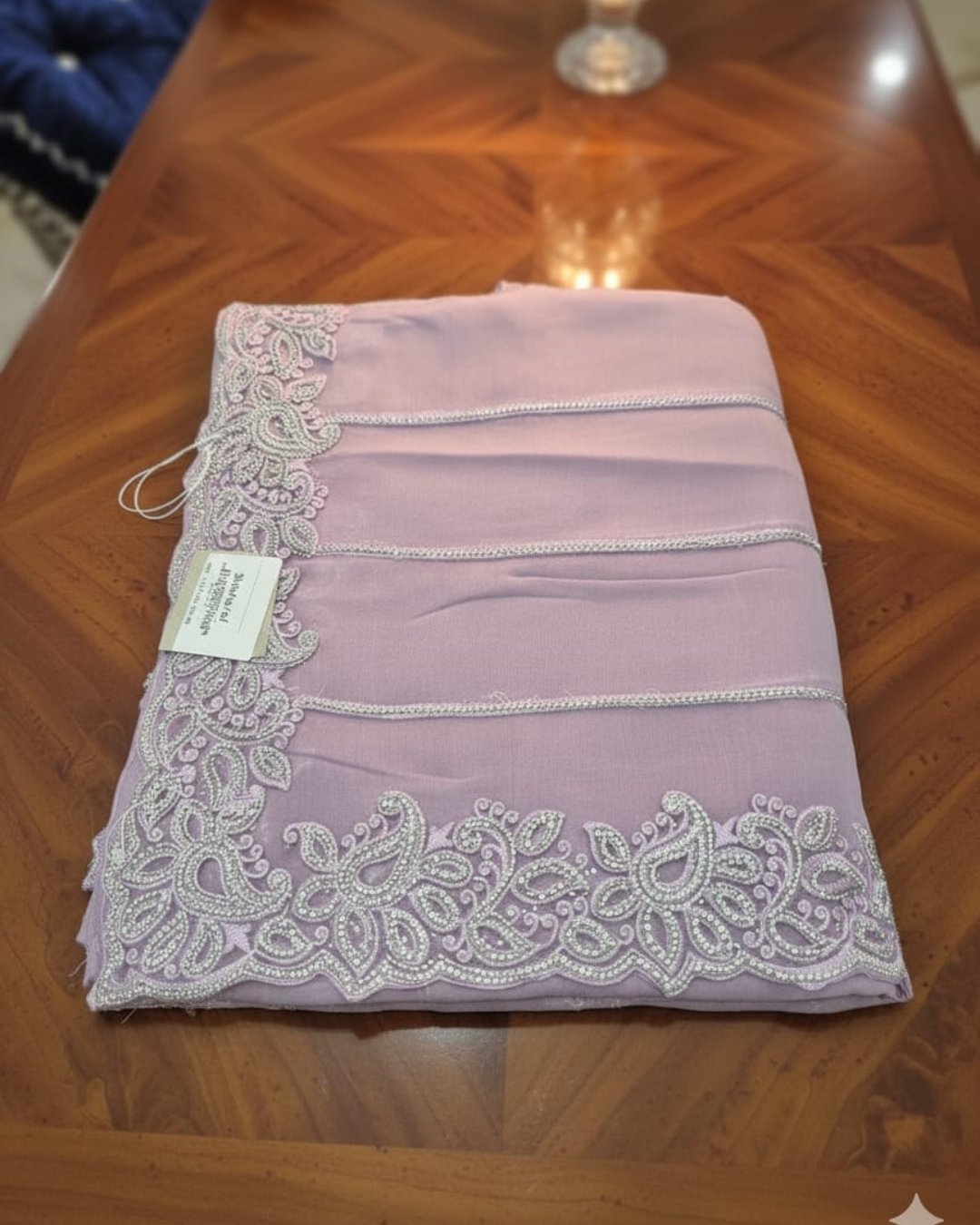 The saree includes a beautifully crafted embroidered blouse piece, unstitched so you can customize it to your perfect fit and style.